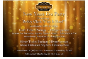 New Year's Eve is the perfect time to bid goodbye to the year gone by and welcome in the New Year. It's the time to rock and roll with family and friends! Make your reservations now by calling 908-777-3777. Ticket sales end Wednesday December 27th or until sold out.