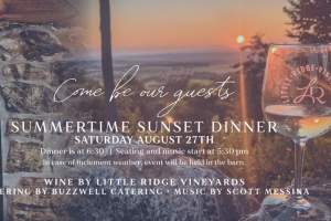 Enjoy dinner with live music as the sun sets over the mountain ridge, vineyards and farm. Wine by Little Ridge Vineyards, Buzzwell Catering and live music by Scott Messina.