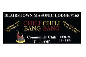 Do you have a great chili reciepe or do you like to eat chili? Blairstown Masonic Lodge is hosting their Chili Chili Bang Bang cook-off. Sign up to enter your best reciepe or come out to test taste.