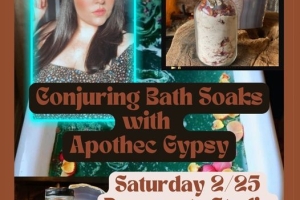 Allyson from Apothec Gypsy is giving a workshop on the importance of self care through baths and soaking, which benefits include manifesting, meditating, detoxing and reminerlizing your body. You will be able to create a unique bath soak mixtures.