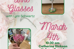 Paint a Spring scene on a wine glass with artist Lynn Schwartz. All supplies will be provided including the glass, paints and brushes needed, paper palette, and aprons for anyone who wants to protect their clothes.
