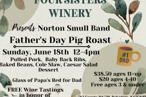 Bring your Pops at Four Sisters under a covered, open-air venue and listen to live music while enjoying suckling pulled pork, baby back ribs, baked ziti, baked beans, coleslaw, and a Caesar salad with a dessert of lemon sheet cake smothered with fresh strawberries and whip cream.