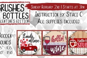 Grab your lady friends, your favorite snacks, and get ready for a night of creativity, laughter, and unforgettable memories. Brook Hollow is hosting another unique paint and sip series where you can choose one of three different designs on an 11.5 OR 15-inch Valentine's door round.