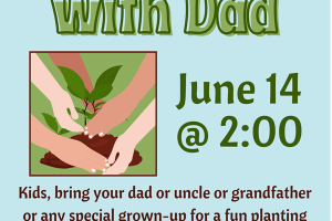 Kids, bring your dad or uncle or grandfather or any special grown-up for a special planting activity at the library! Please register each person attending, adults included.
