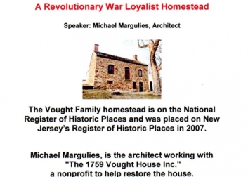 Architect Michael Margulies presents on this homestead, which is recognized on the National Register of Historic Places and has been placed on the New Jersey's Register of Historic Places in 2007. Mr. Margulies runs "The Vought House Inc.," a nonprofit helping to restore the house.
