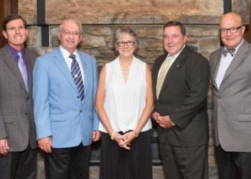 Businessman John McCann, artist Tomas Gonzales, super community volunteer Kathleen Halpin, former Warren County Sheriff Sal Simonetti, and leading physician Dr. Robert Friedman will be inducted into the Hall at the gala event which includes live music and a silent auction. In addition, posthumously Vice Admiral John Bulkeley, formerly of Hackettstown, and Blairstown ground-breaker John Blair will also be inducted at the Warren County Community College Foundation fundraiser event. Pictured, left to right: Friedman; Simonetti; Halpin; McCann and Gonzales.