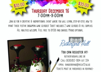 A creative & inspirational event where you will learn, step-by-step, how to paint these festive snowman wine glasses! Ticket includes 2 wine glasses & all supplies. All abilities welcome. Feel free to BYOB and snacks. Masks optional. $35/person.