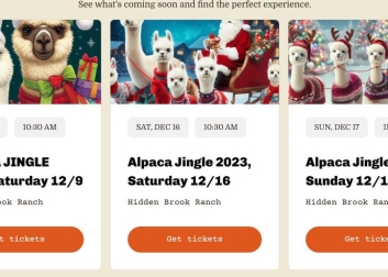 Come out to Hidden Brook Ranch for Alpaca Jingle, a fluffy wonderland of cheer where adorable alpacas and delightful llamas transform into Santa's little helpers. Prepare to be dazzled as these fluffy creatures dress up as Elves and Santa himself, spreading joy and holiday cheer. You'll have the opportunity to interact with and feed the alpacas and experience the magic of connecting with these gentle creatures offering their favorite treats.