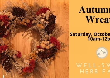 Usher in fall by creating a 16” wreath using a grapevine base and a wide selection of dried flowers, artemisia, seed pods, and more; color schemed to your choice. Add festive décor to your home. Reservations are required. $44.