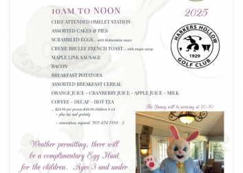 Bring your little ones for a chance to dine with the Easter Bunny. All the grand breakfast dishes will be available including omelet station, bacon, sausage, eggs, French toast, juices, assorted cereals and more. Weather permitting, there will also be an egg hunt starting at 11:30am. Easter Bunny will arrive at 10:30am.