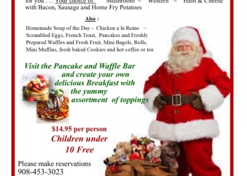 Come see Santa at Apple Mountain Golf! Enjoy a delicious buffet with a waffle bar. $14.95 per person and children under 10 are free. Call 908-453-3023 to make your reservation.