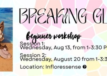Breaking Glass Art Studio at Infloressense. This summer, create your own beach-inspired stained glass seashell! A condensed two-day beginner workshop will introduce you to the fine art of Tiffany-style stained glass. All materials will be provided, including glass, patterns, tools, and equipment. $70.