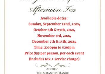 A delightful afternoon with a five-course High Tea, held in the beautiful mansion. Kindly RSVP to Oxford's Delightful Bakery, 908-310-9718.