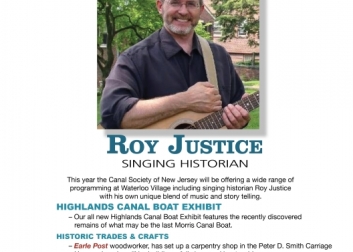 The Canal Society of New Jersey offers a wide range of programming at Waterloo Village this year including the new Highlands Canal Boat Exhibit featuring the recently discovered remains of what may be the last Morris Canal Boat. Some of the historic buildings will be open, historic trades & crafts will be demonstrated, and there will be canal boat rides. Singing Historian Roy Justice will appear July 22.