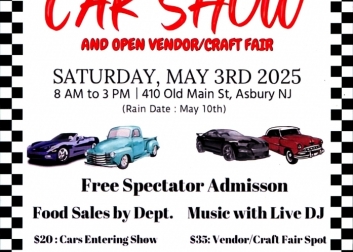 Rummage sale will take place at Broadway - Station 1 and Car Show happening at 410 Old Main St., Asbury.