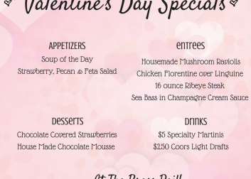 Spend Valentine's Day at The Brass Rail. Enjoy a 3-course meal with $5 specialty martinis and $2.50 Coors Light drafts. Reservations are recommended, so, call 908-454-0931.
