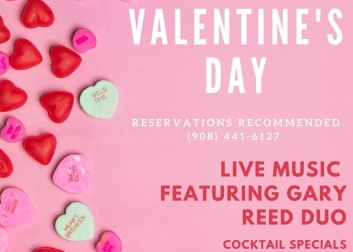 Reservations reommended for Valentine's Day dinner! Cocktail specials and live music by Gary Reed Duo. Call 908-441-6127 to book your table.