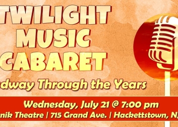 FREE EVENT! Limited availability. Reservations required. “Broadway through the Years - A Twilight Music Cabaret" will feature a selection of Broadway’s greatest hits, from the 1960s to today.  The production will feature the vocal talents of Centenary University students, alumni, and Centenary Stage Company favorites. Some song selections include “Being Alive” from Company, “I Can Do Better Than That” from The Last 5 Years, and “Dance with You” from The Prom.