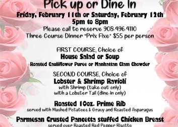 Chef's Catering is opening thier doors this weekend for dine in or take out. A three course meal includes salad or soup, a main dish and dessert. Reservations are required.