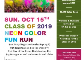 Support the Class of 2019 by walking or running at the Neon Color Fun Run!