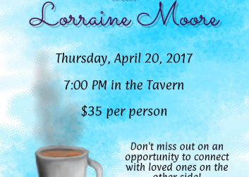 Enjoy coffee and dessert in our rustic tavern with Lorraine Moore, as she connects with your loved ones. $35/person. Call today to make your reservation! 908-459-4884