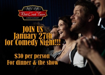 Come to the Rock Creek tavern for Comedy Night dinner and a show! Tickets are $30 per person for dinner and the comedy show. Tickets are selling fast so purchase them now. Call 908-777-3777.