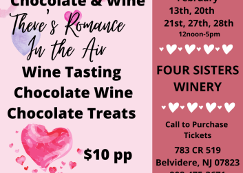February is the month of Romance and Four Sisters Winery will recognize each Saturday of February as “Cupid’s Day.” Bring someone special with you to enjoy up to 9 wines and a pairing of chocolate with three of the wines. This event starts at 11am on February 27 and 28. Cost is $10 per person.