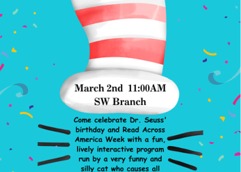 Celebrate Dr. Seuss' birthday and Read Across America Week with a fun, lively interactive program run by a silly cat who causes all types of mischief. Participate in a Seussology game show, Seussology rhyming time and a Seussology dance party!