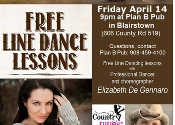Free line dancing lessons offered by professional dancer and choreographer Elizabeth De Gennaro. Call 908-459-4100 for details.