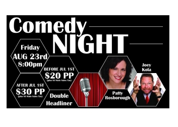Laugh the night away with two amazing headliners, Joey Kola and Patty Rosborough. Food truck available at the tasting room, starting at 6pm - Chef D's, specializing in artisan grilled cheese and loaded fries