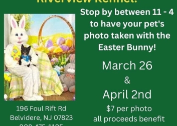Look who's hopping by the kennels! Have your pet's picture taken with the Easter Bunny. All proceeds go to support the Riverview Kennels.