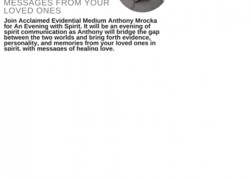 Join Acclaimed Evidential Medium Anthony Mrocka for an evening of spirit communication as Anthony will bridge the gap between the two worlds and bring forth evidence, personality, and memories from your loved ones in spirit, with messages of healing and love. Cost is $40 and you can sign up here.