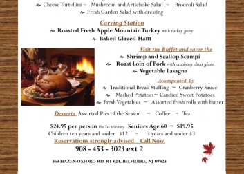 Reservations strongly advised - call now 908-453-3203 ext. 2.