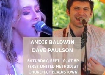 A free concert made possible by the FUMC of Blairstown featuring Andie Baldwin and Dave Paulson of Water Street.