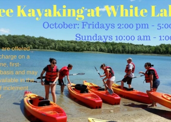 Enjoy free kayaking at Warren County's White Lake Natural Resource Area every Friday and Sunday in October. Kayaks are offered free of charge on a first-come, first-served basis, and may be unavailable in the event of inclement weather.