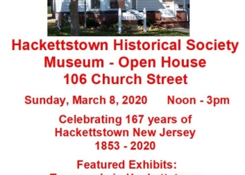 Visit Hackettstown Historical Society Museum's Open House to celebrate Hackettstown's 167th Year! Check out the Museum and this year's new displays. Featured exhibits include toys made in Hackettstown, vintage dolls, and vintage medical equipment. The tour is free and open to the public. Free refreshments too!