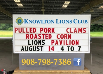 A chance to get Knowlton Lions' delicious (and famous) roasted sweet corn! A nice meal will be served up under the huge Lions Pavilion (behind Smitty's Liquors on Route 46) offering pulled pork sandwich w/ pork & beans: $7; a dozen clams: $7; and Roasted Sweet Corn: $3. Takeout available - limited seating. Questions call 908-798-7386.