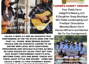 Restaurant, Brewery and retail specials throughout town, plus the Farmers Market and Live Music with Lelica and Mike 2.0, an acoustic duo performing today's hits, Motown Funk, 90's and more! Music and market are at 232 Main Street.