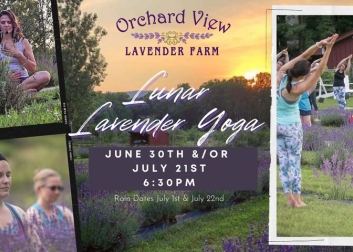 Embark on your journey towards inner balance and restored peace within the mind, body and soul while practicing Hatha Yoga amidst the tranquil, aromatic lavender fields. Afterwards, stay to celebrate the 4th annual anniversary of Lunar Lavender Yoga. Shop in the lavender boutique and surrender to the picturesque Summer Sunset as Mother Nature paints vivid colors across the sky's canvas while enjoying complimentary lavender infused refreshments.