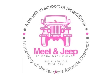 Bring the family to Donaldson's for an event benefiting Sister2Sister, an organizaion hepling those in underserved communitie battling cancer, in memory of Amanda Chernack. Local food, drink, music, hayrides, & Jeeps.