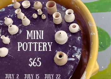 During this 2 hour workshop, you will be taught how to wheel-throw miniature clay vessels and experiment with different forms on a tiny pottery wheel. These vessels can be used to hold small objects or mini plants for a decorative table-top set in your office or home! No prior pottery experience is required to participate in this workshop.