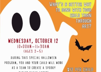 During this special Halloween program you and your child will work as a team to create a spooky papier mache ghost! Ages 2-5, $12 per session
