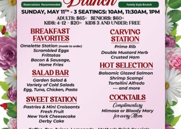 Enjoy a Mother's Day brunch with 3 seatings, 10am, 11:30am, and 1pm. Live music with Rich Ortiz.