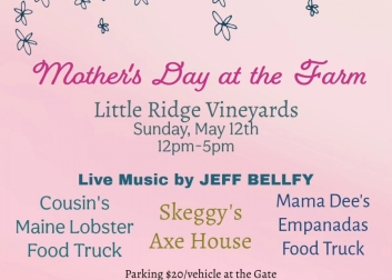 Come hang out at the farm with mom for Mother's Day. Cousins Maine Lobster, Skeggy's Axe House, Mama Dee's Empanadas and the music of Jeff Bellfy!