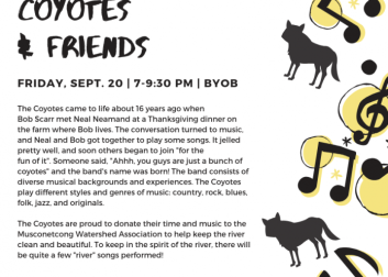 Listen to The Coyotes as they play an assortment of country, rock, blues, folk and jazz covers and originals. This event is outside, so please plan to bring your own chair. It is also BYOB, but some snacks will be provided. Tickets: $20 through 9/10, $25 after 9/10. Call 908-537-7060 or click here for tickets.
