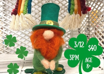 In this workshop you will create your own lucky Leprechaun, choosing to add a handmade hat or give him a gnome head and hat.