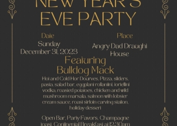 Festive party favors will be provided to make some noise at midnight, with Bulldog Mack. Continental breakfast at 12:30am.