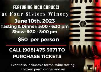 The evening begins with a formal wine tasting and a chicken parm dinner followed by dessert and an evening of laughs, with Rich, a second generation comedian and child actor. He's been performing stand-up for over 23 years and has been on MTV, MLB.com and featured in the New York Post and has performed in the 2022 NY Comedy Festival and is a regular on the NY Comedy Scene.