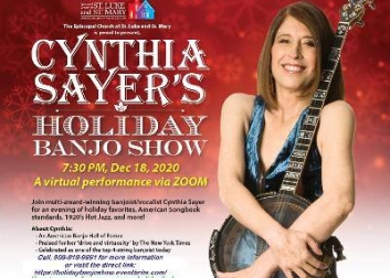 Music at St. Luke's is proud to present jazz banjoist/vocalist Cynthia Sayer in the virtual concert series, as she presents an evening of holiday favorites, American Songbook standards, 1920’s Hot Jazz, and more, via ZOOM.