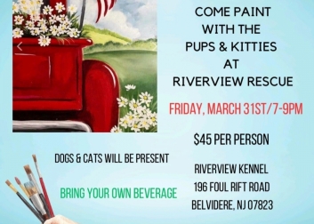 Come paint with the puppies and kitties while raising money for this rescue. Bring your own beverages. Cost is $45/ person.